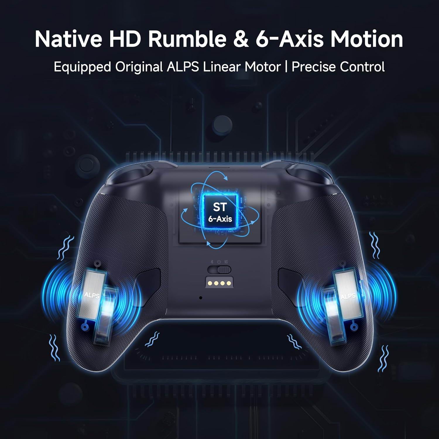 Використовують найновішу технологію TMR у поєднанні з рідким силіконовим кільцем LSR та перевернутою структурою ковпачка джойстика. Завдяки безконтактним магнітним датчикам забезпечується плавніше керування, ніж джойстики з ефектом Холла, а також плавне відчуття та нульовий дрейф. Забезпечує плавну роботу без дрейфу та високу точність для змагальних ігор.