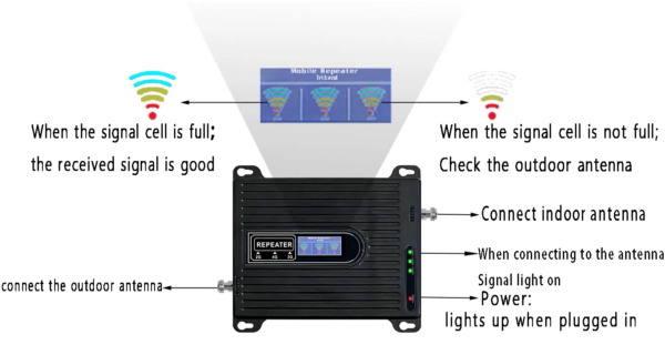 • Попередження: GSM LTE репітер, підсилювач мобільного зв’язку не може створити сигнал з нічого. Там, де немає ніякого покриття в принципі, робота підсилювача сигналу не можлива. Якщо хоч якийсь слабкий сигнал (може періодичний) мобільного оператора буде, то цей пристрій перетворить його на нормальний для зв’язку.