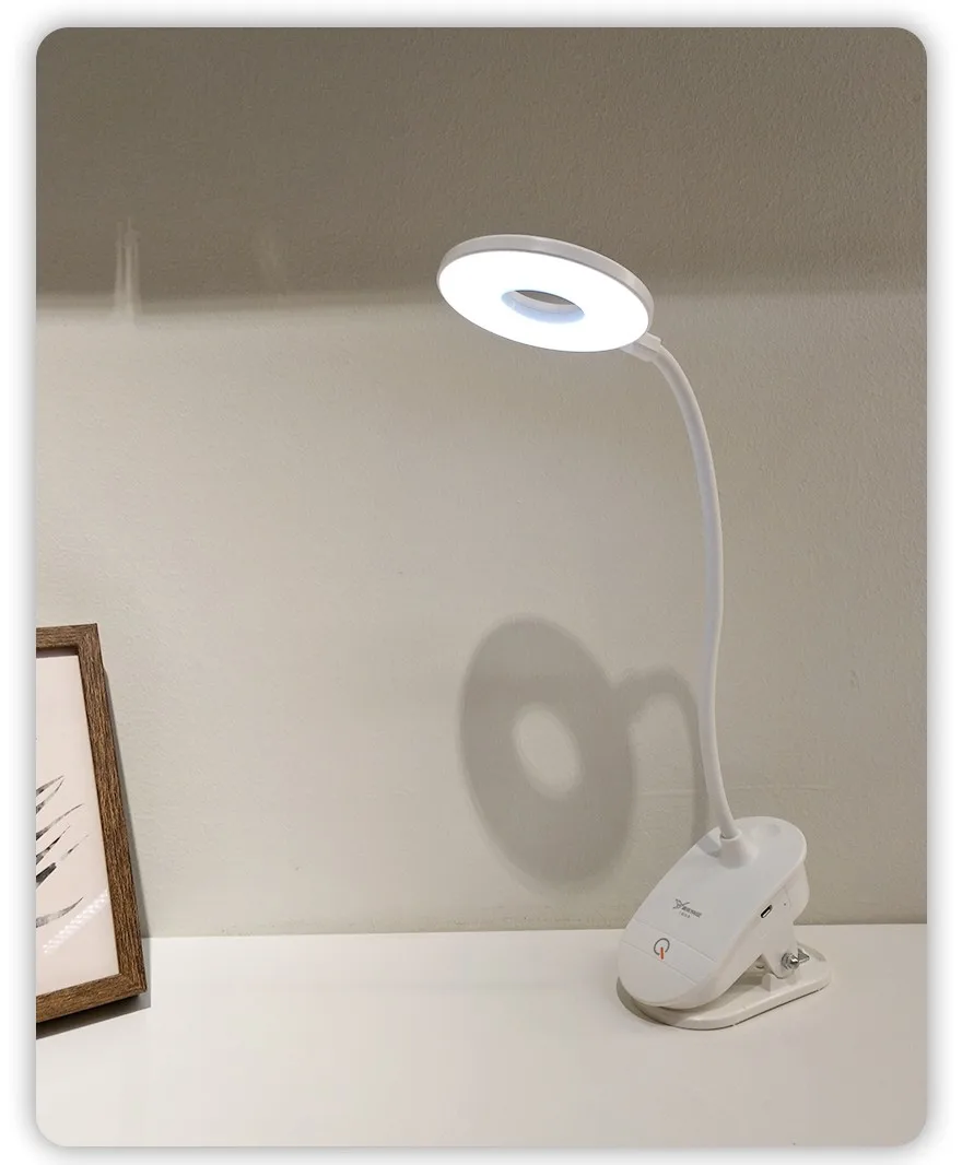 На кліпсі настільної лампи розташована кнопка перемикання режимів інтенсивності світла. Усього передбачено 3 режими інтенсивності світіння.