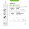 Мережевий фільтр, подовжувач, перехідник, трійник розгалужувач з USB та Type-C роз’ємами. Має 3 євророзетки, 4 роз’єми USB для зарядки телефону, навушників, планшета та інших гаджетів, 2 роз’єми Type-C. Перехідник має протиударний, вогнестійкий корпус. Мережевий фільтр із запобіжником оснащений кнопкою захисного авто-вимикання, захищаючи вашу техніку від стрибка напруги. Кожна розетка оснащена захисними шторками, що перешкоджають механічному проникненню предметів усередину подовжувача, коли він не використовується.