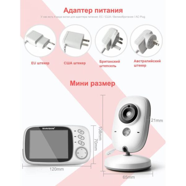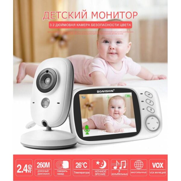Відеоняня Boavision VB603-EU 3,2″ LCD, 750мАг є бездротовим цифровим пристроєм, призначеним для ведення спостереження за дитиною під час сну або ігор, не відриваючи батьків від щоденних справ. Модель має стильний дизайн і складається з двох блоків: батьківського і дитячого .