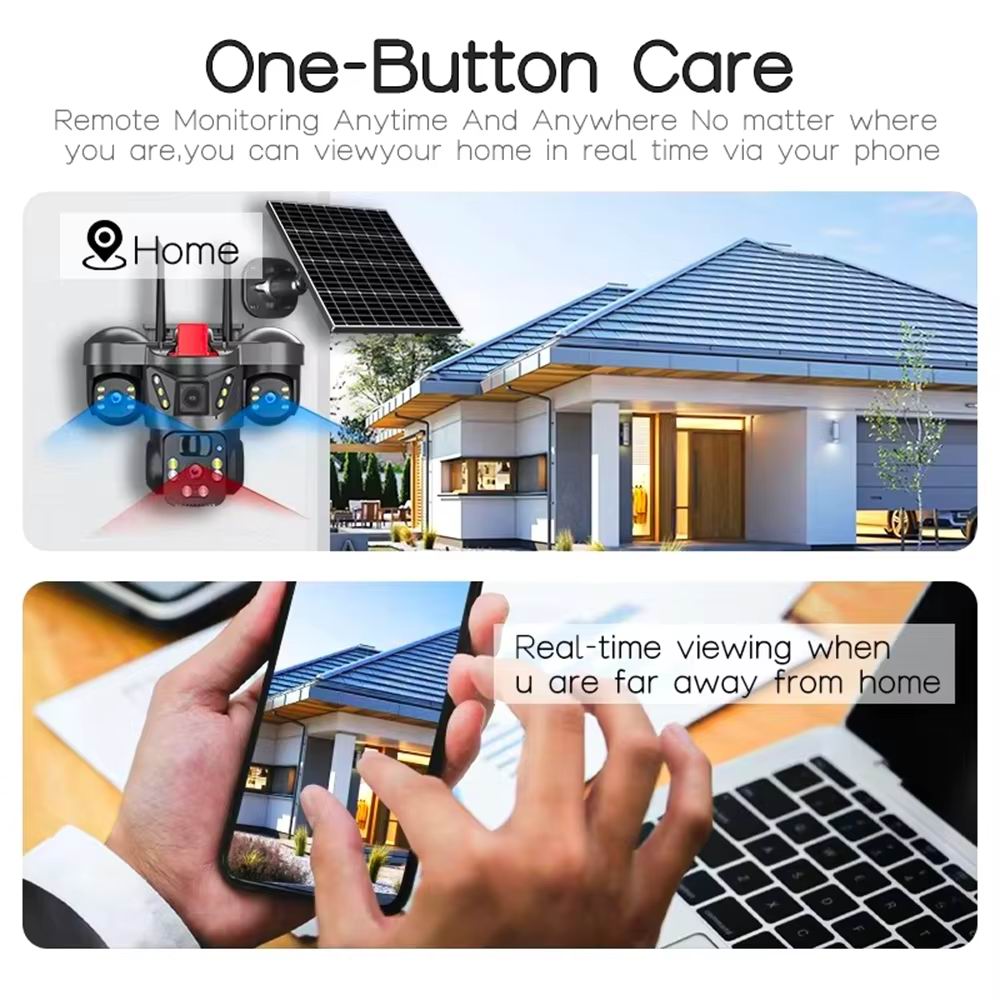 Панорамний перегляд, насолоджуйтесь зображенням 12 Mp та відео в 1080P Full HD вдень та вночі. Сонячна камера безпеки також підтримує нічне бачення, виявлення руху та двосторонню передачу звуку.