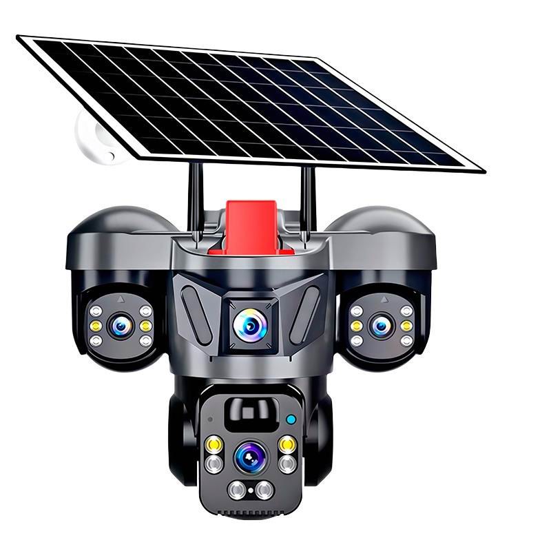 Зовнішня бездротова камера відеоспостереження на сонячній батареї з живленням від вбудованих акумуляторних батарей та сонячної панелі, а також низьке споживання та просте встановлення. Великий діапазон обертання: горизонтальний: 90 °, вертикальний: 120 °; кут огляду забезпечує повний огляд на 360 °.
