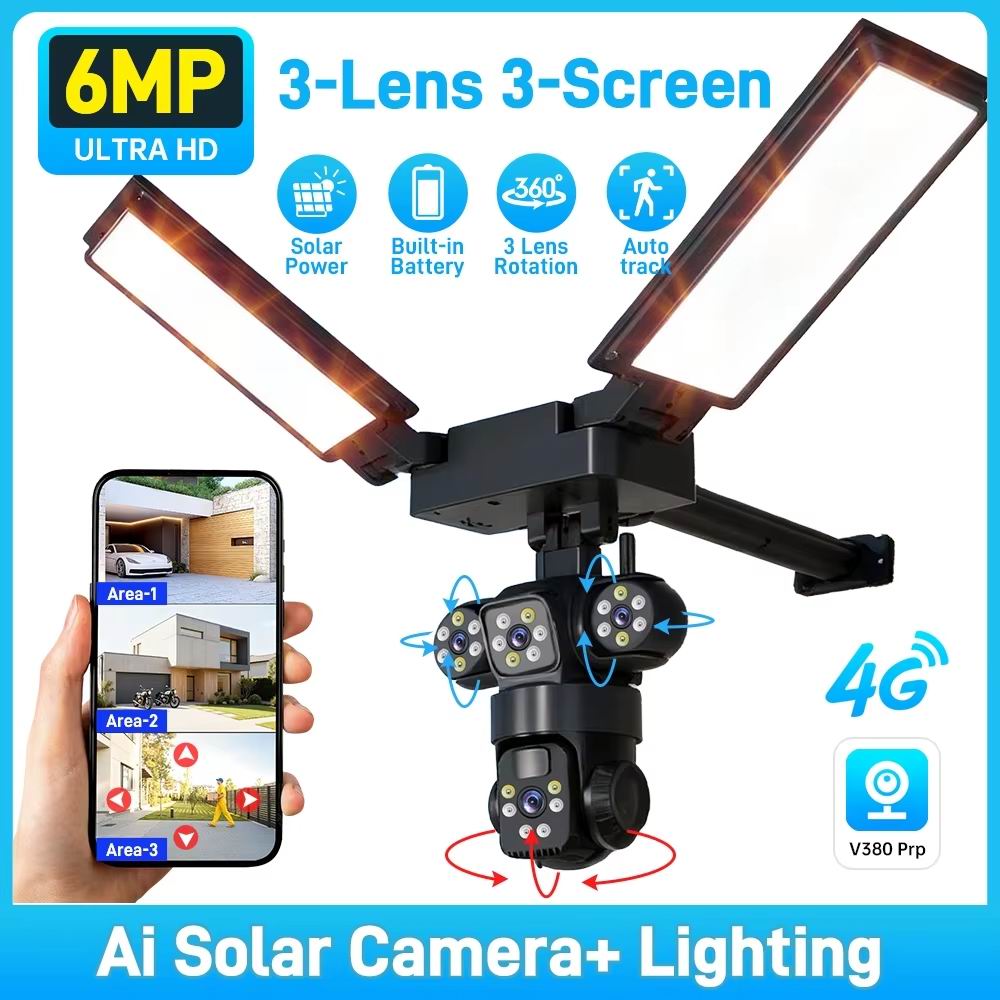 Панорамний перегляд, насолоджуйтесь зображенням 6 Mp та відео в 1080P Full HD вдень та вночі. Сонячна камера безпеки також підтримує нічне бачення, виявлення руху та двосторонню передачу звуку.