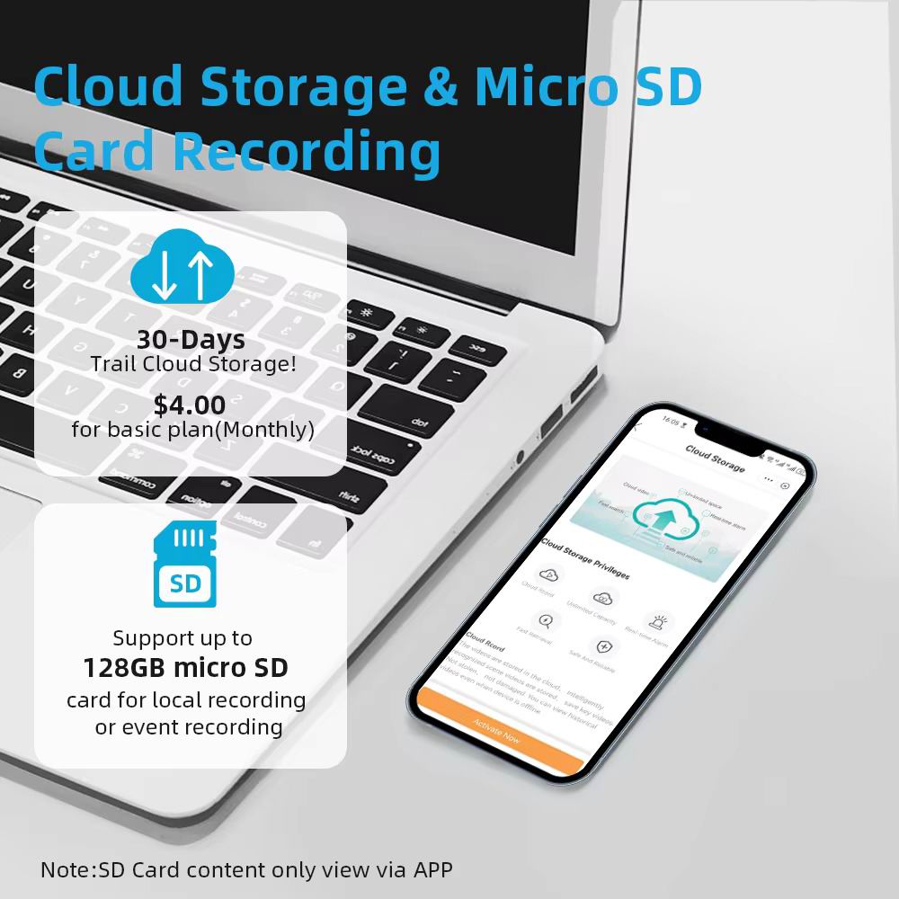Зовнішній слот для SD-карт, легко та зручно вставляти. Підтримує карту micro SD до 128 ГБ (не входить до комплекту). Вона також підтримує хмарні сервіси.