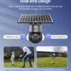 Зовнішня бездротова камера відеоспостереження на сонячній батареї з живленням від вбудованих акумуляторних батарей та сонячної панелі, а також низьке споживання та просте встановлення. Великий діапазон обертання: горизонтальний: 90 °, вертикальний: 120 °; кут огляду забезпечує повний огляд на 360 °.
