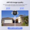 Панорамний перегляд, насолоджуйтесь зображенням 6 Mp та відео в 1080P Full HD вдень та вночі. Сонячна камера безпеки також підтримує нічне бачення, виявлення руху та двосторонню передачу звуку.