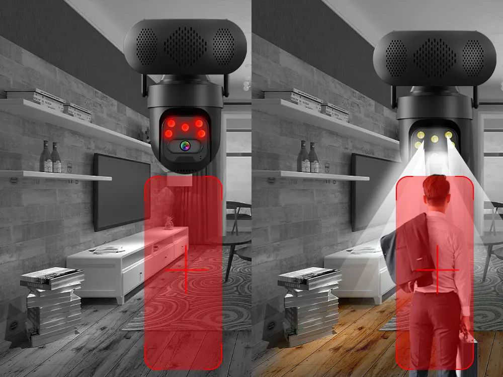 Функція інтелектуального виявлення людини за допомогою штучного інтелекту, підтримка лінії змішування, області, двостороннього виявлення потоку, для виявлення людської форми, просте налаштування в додатку. Камера може розрізняти людей та інші об’єкти на відстані близько 7 метрів, вона просто спрацьовує на телефон лише тоді, коли виявляє людину в режимі виявлення людини. А в звичайному режимі виявлення руху вона може виявляти будь-який рух.