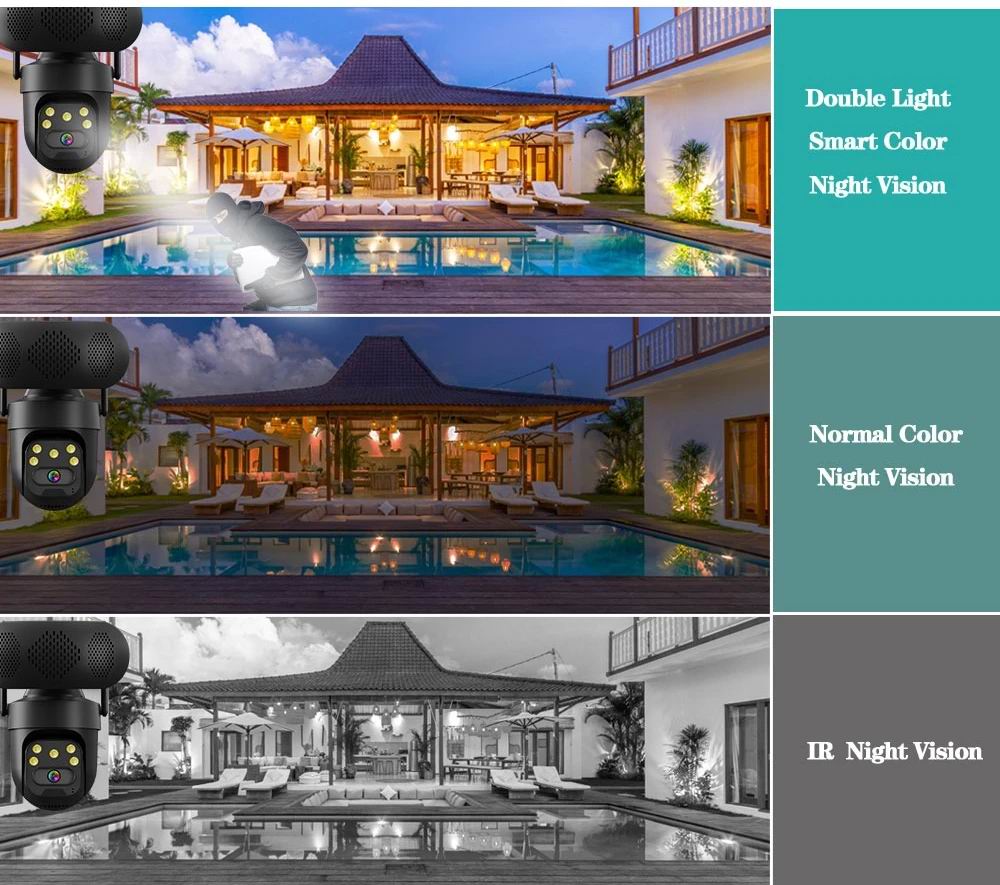 Вбудовані 4 інфрачервоні світлодіоди + 6 білих світлодіодів, підтримка кольорового нічного бачення, чорно-білого режиму, подвійне світло, інтелектуальне кольорове нічне бачення, 3 режими нічного бачення.
