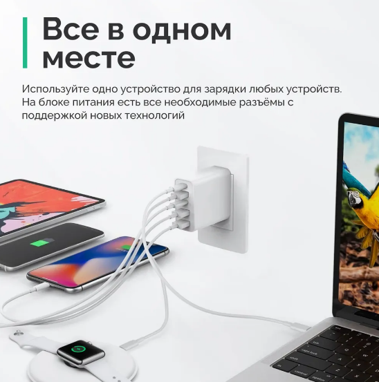Швидкий блок заряджання Type-C та USB дозволить одночасно заряджати до 5 пристроїв однієї розетки. Наш універсальний адаптер для зарядки iPhone зробить життя простішим і вам більше не доведеться брати з собою в поїздки кілька різних адаптерів живлення.