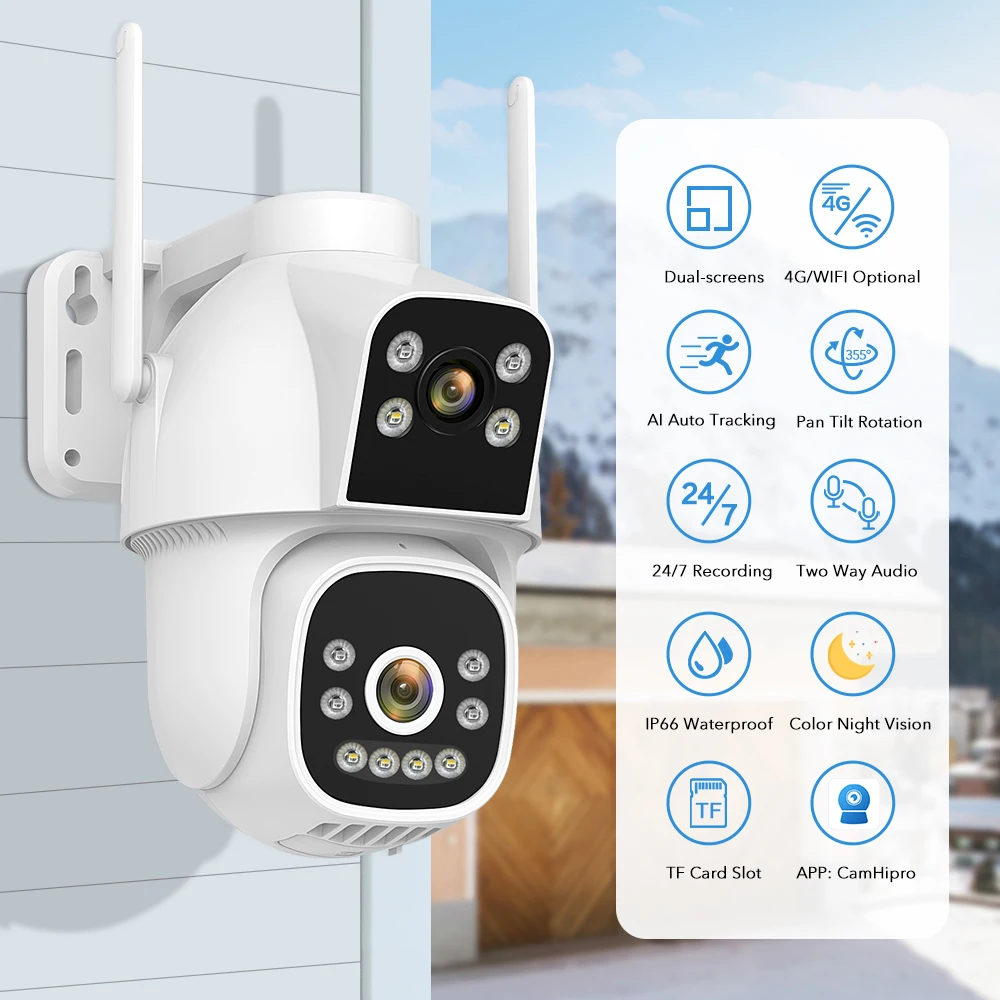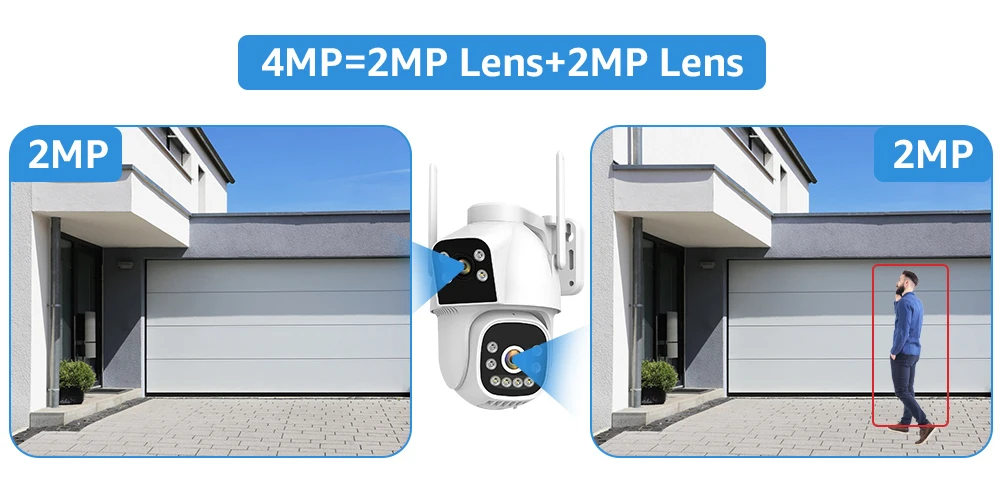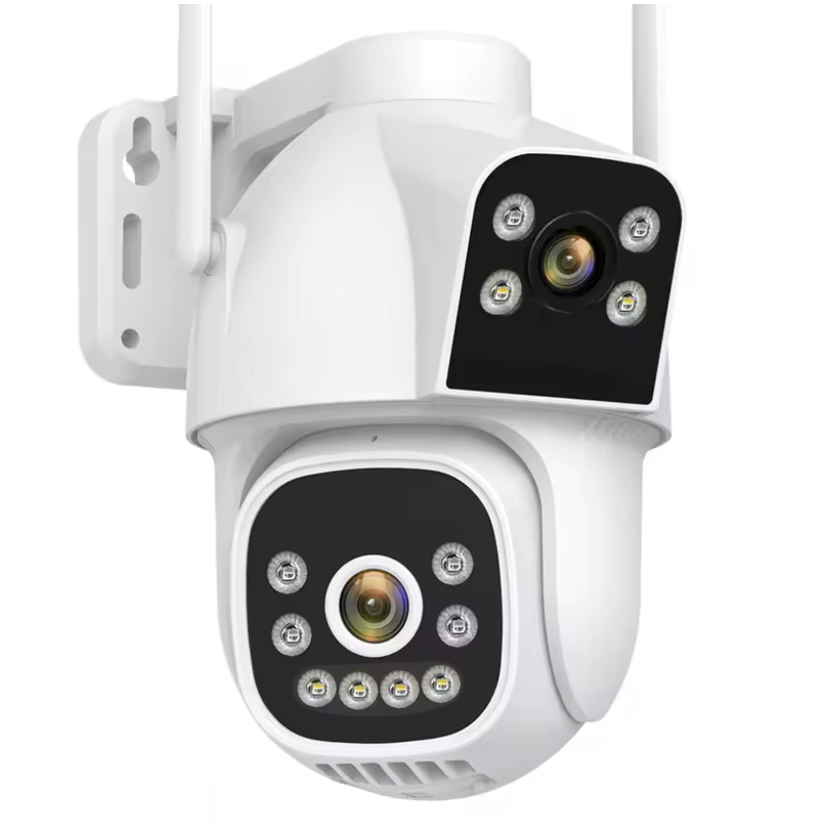 Верхня камера має фіксоване положення, що дозволяє переглядати панорамне зображення, нижня – це PTZ-камера, яка підтримує поворот, панорамування та автоматичне відстеження.