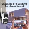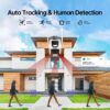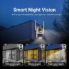 Завдяки куту огляду PTZ 355°Панорамування 90°Нахил та куту огляду 360°, бездротова зовнішня камера відеоспостереження може контролювати кожен куточок. Підтримує горизонтальне автоматичне відстеження та вертикальне горизонтальне ручне відстеження.