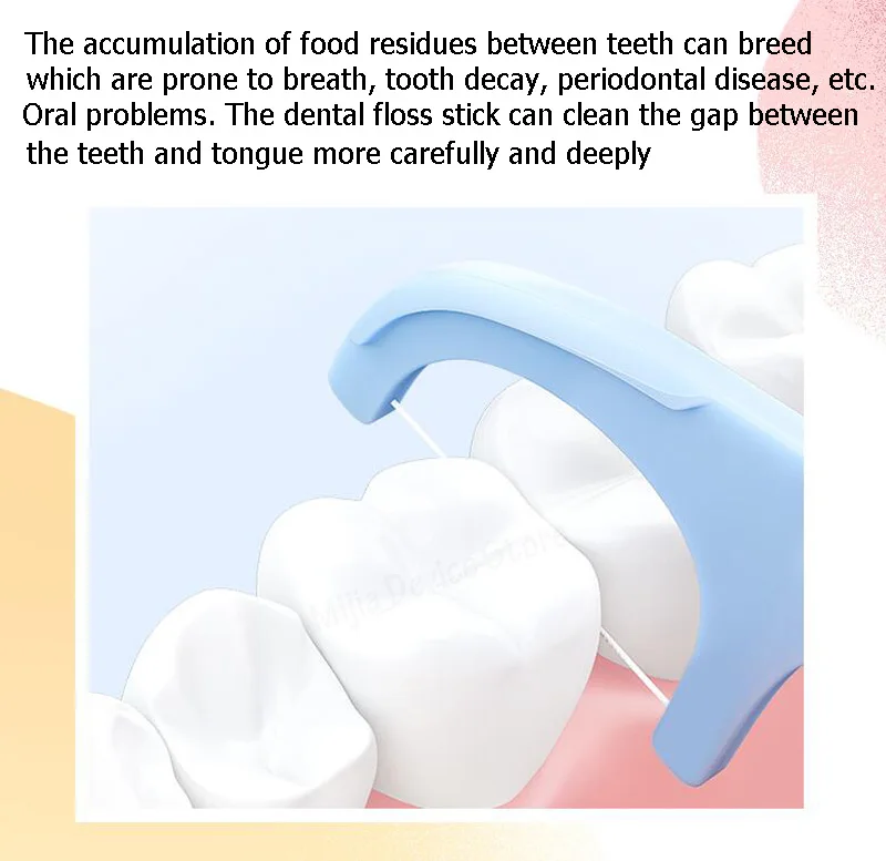 В одній упаковці поставляється 50 штук зубних ниток у тримачах. Крім видалення забруднень між зубів, вони відмінно справляються з чищенням язика та великих частинок.